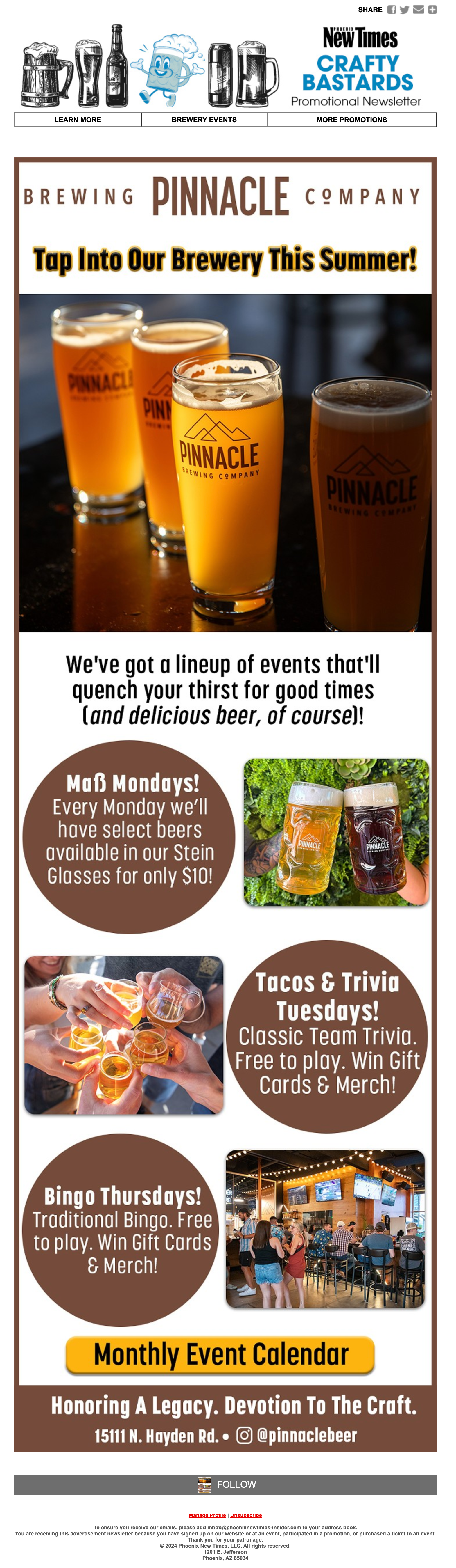 Join our club of craft brew lovers and receive discounts on beer purchases at bars and liquor stores, exclusive invites to tastings and beer pairings, and offers on beer festival tickets. Delivered as needed Monday, Wednesday, and Friday.