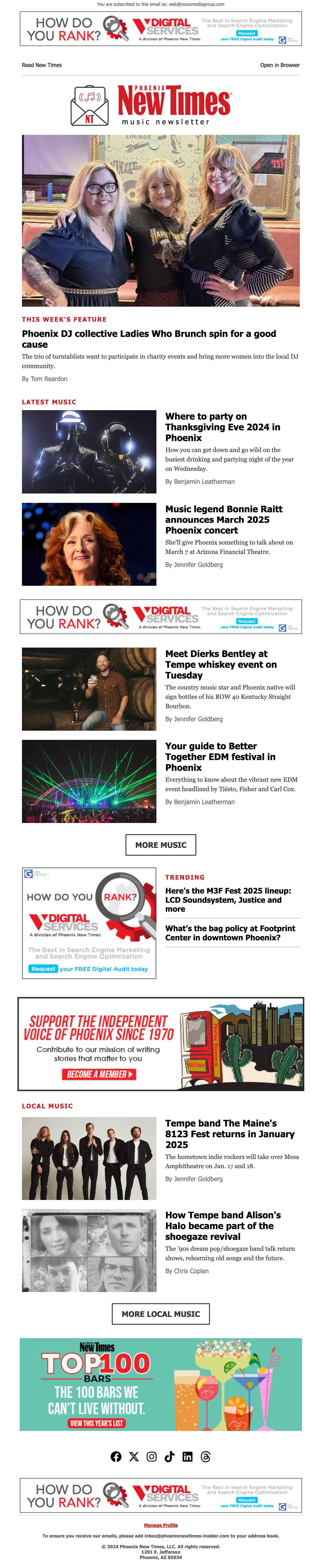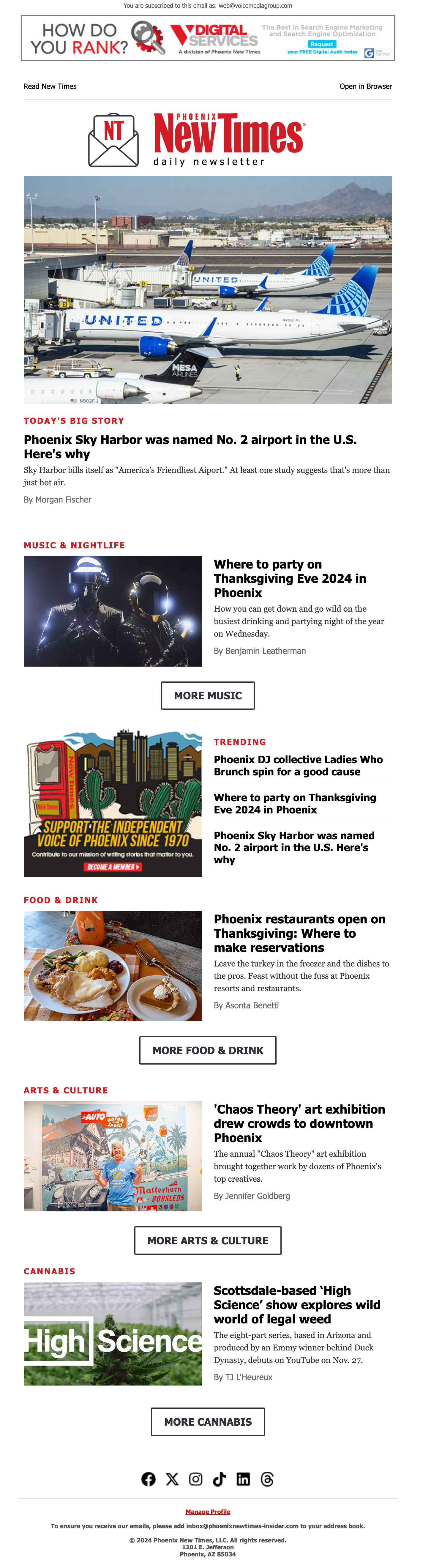 Stay informed with our daily digest of the most popular news, music, food and arts stories in Phoenix. Delivered every morning Monday through Friday.