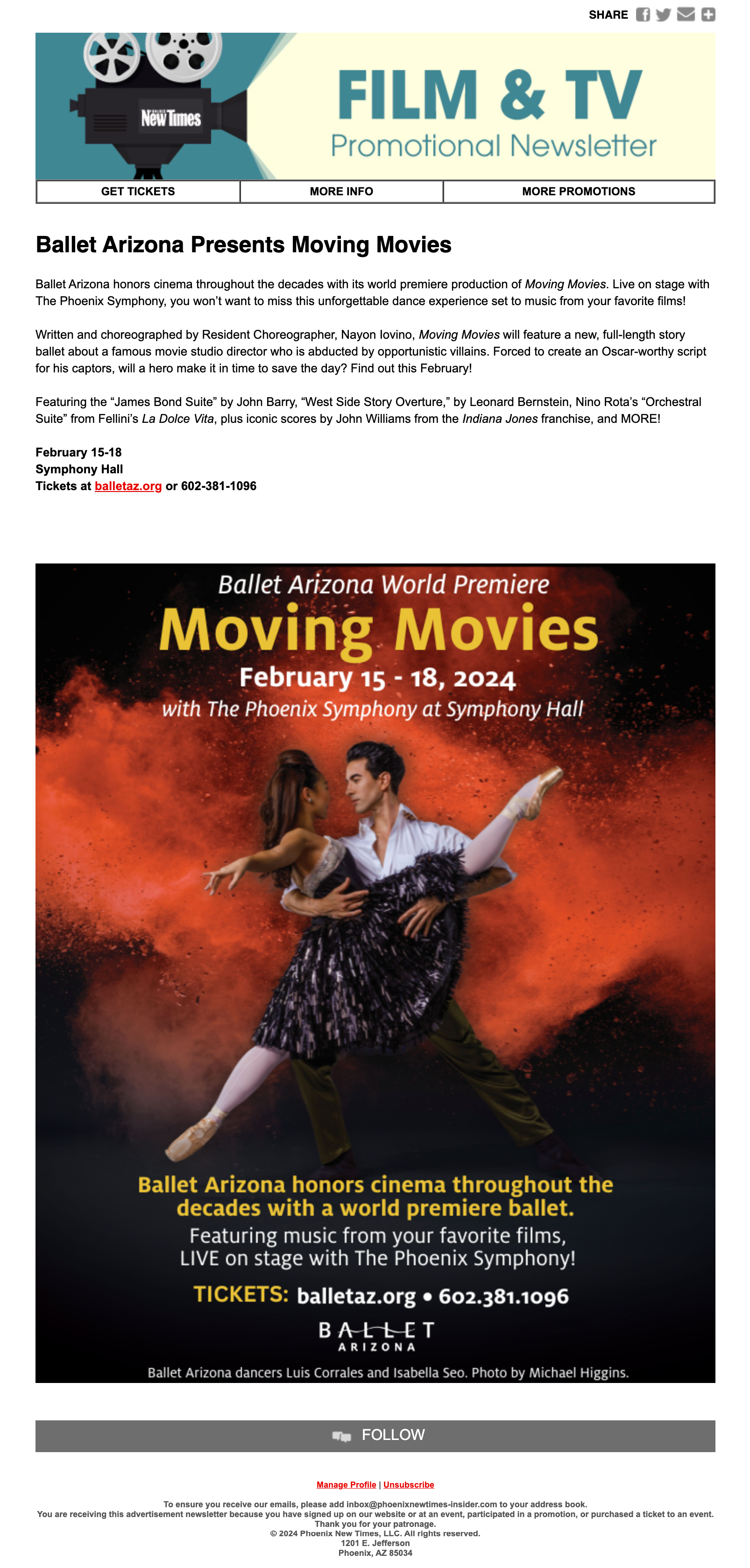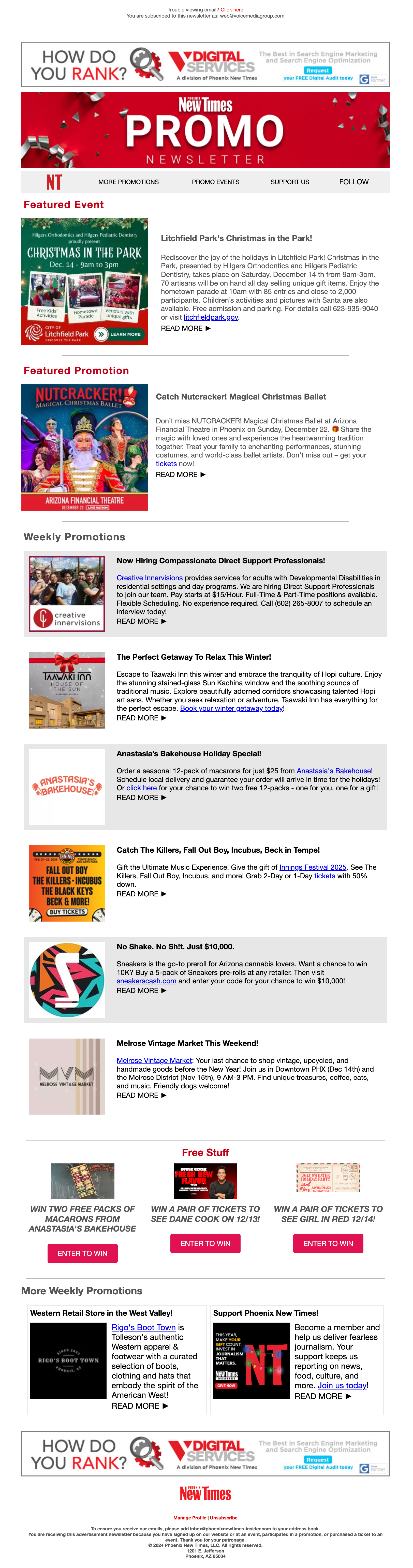 Stay informed about our Best of Phoenix® winners with promotional offers and announcements from past and present title-holders. Delivered as needed Monday, Wednesday, and Friday.